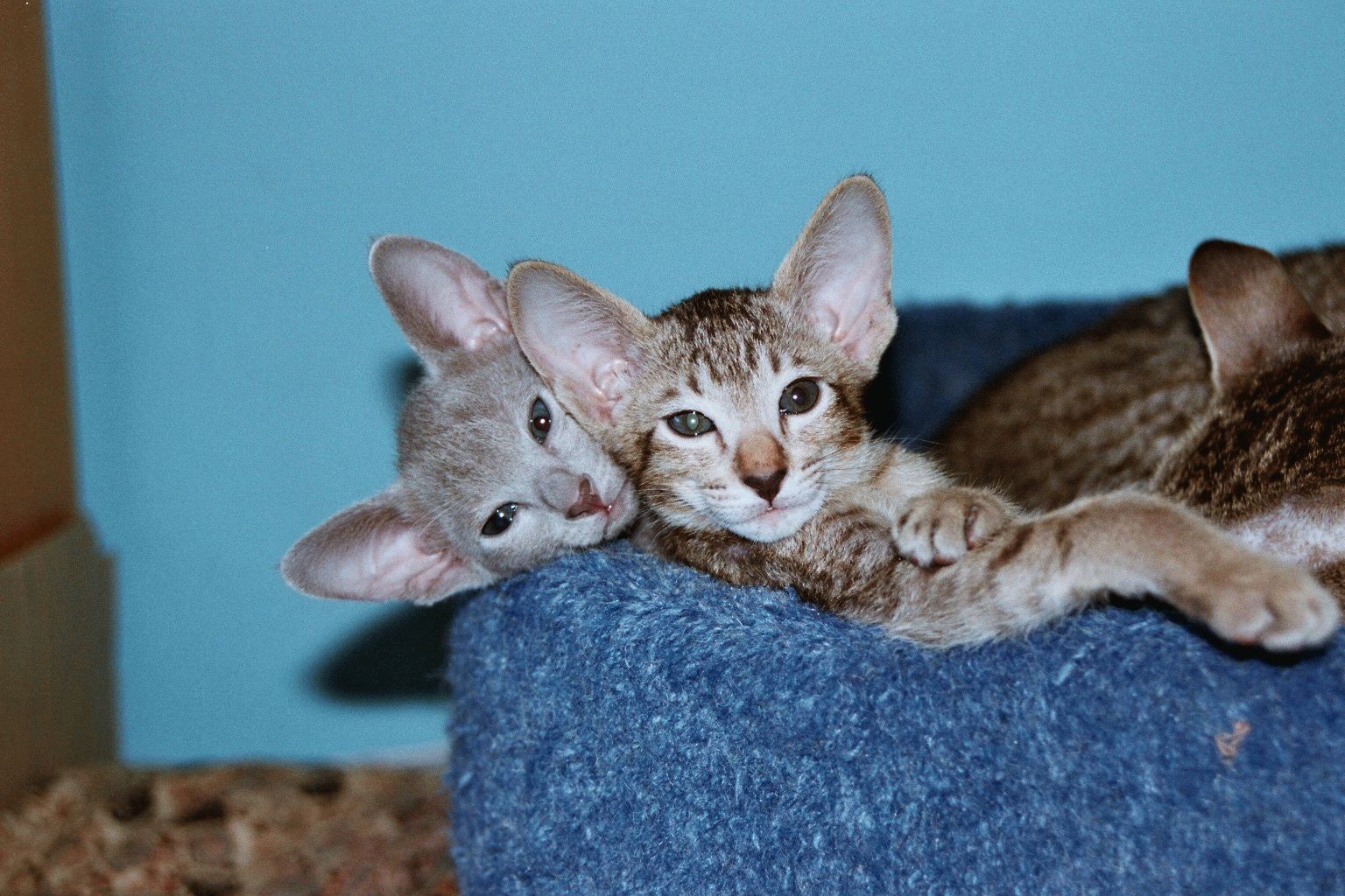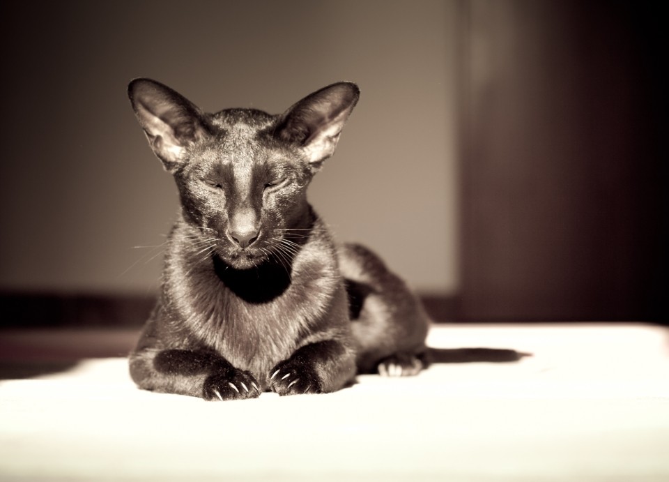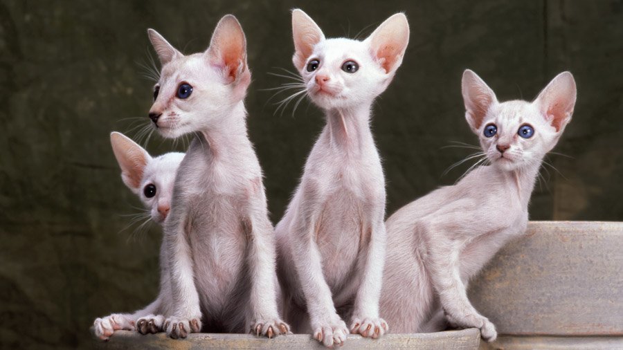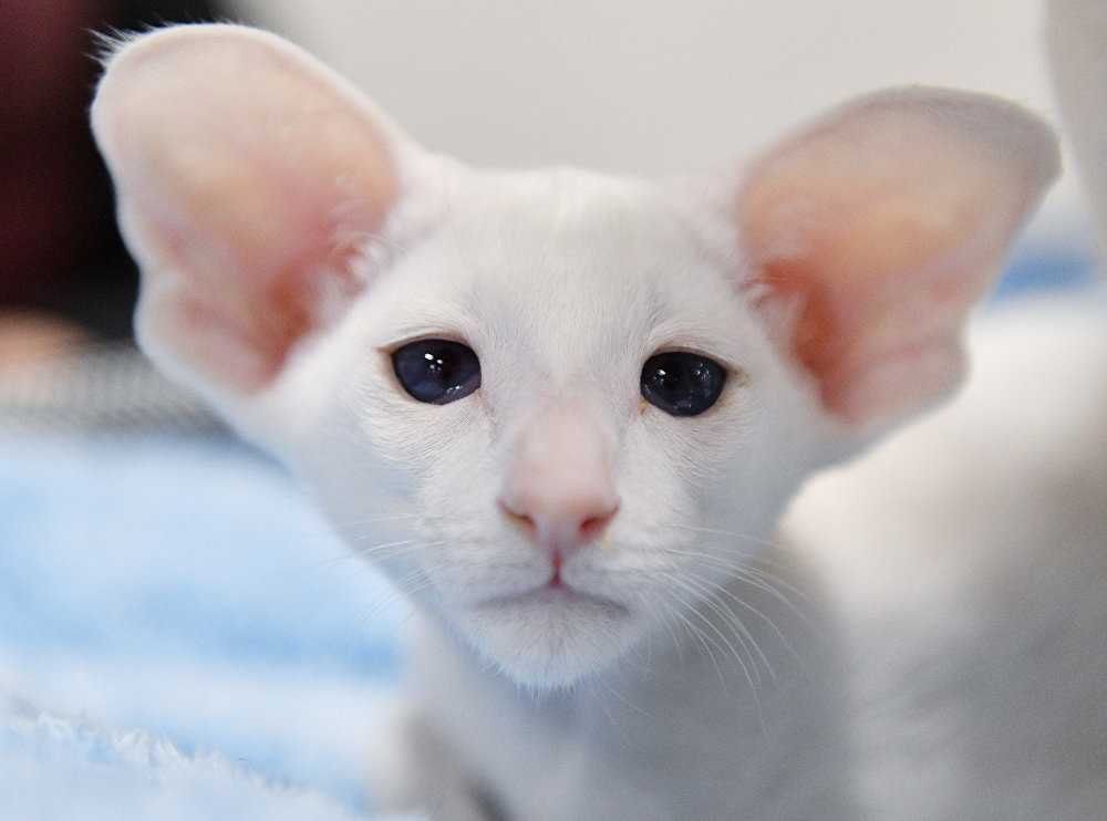 Ориентальные кошки – были выведены американскими селекционерами в 60-х годах. Путём скрещивания балинезийской кошки и короткошёрстного ориентала заводчики смогли вывести эту удивительную кошку. Впервые элегантная красавица была представлена на соревнованиях в 1977 году как самостоятельная порода. Но официально длинноухих кошек признали в 1997 году ассоциацией GCCF. Ориентальная кошка похожа на сиамскую породу, только уши у неё гораздо больше.
