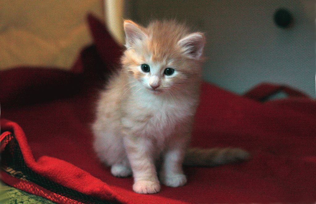 Чтобы не усугубить стресс от переезда, первое время котенка кормят тем, что давал заводчик. Режим питания подбирают с учетом возраста норвежской лесной: