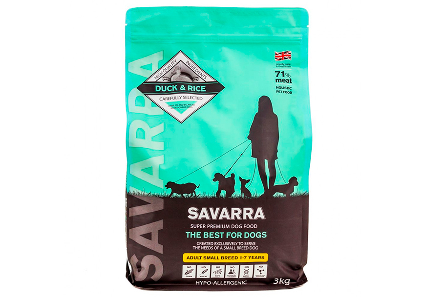 | Savarra для маленьких пород | В меню корма этой марки может входить в большом количестве мясо домашней птицы (индейки, утки), говядина, различные овощи, витамины и минералы. | В составе нет курицы, пшеницы, кукурузы. Корм считается гипоаллергенным. Высокая энергетическая ценность позволяет минимизировать расход корма. | Не указано процентное содержание ингредиентов. Высокая цена. |