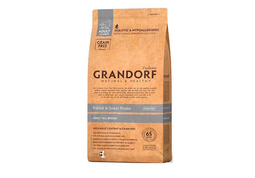| Грандорф | В состав корма входит более 60% мясных ингредиентов (домашняя птица, телятина, ягненок, кролик), морская рыба. Различные фруктовые и овощные включения. Содержит до 18% жира. | Изготавливается из качественных натуральных продуктов (исключается зерно пшеницы и курица, сахар и другие вредные включения). Не вызывает аллергию. Очень питательный. Подходит для подвижных собак. | Старые и малоподвижные собаки быстро набирают вес. |