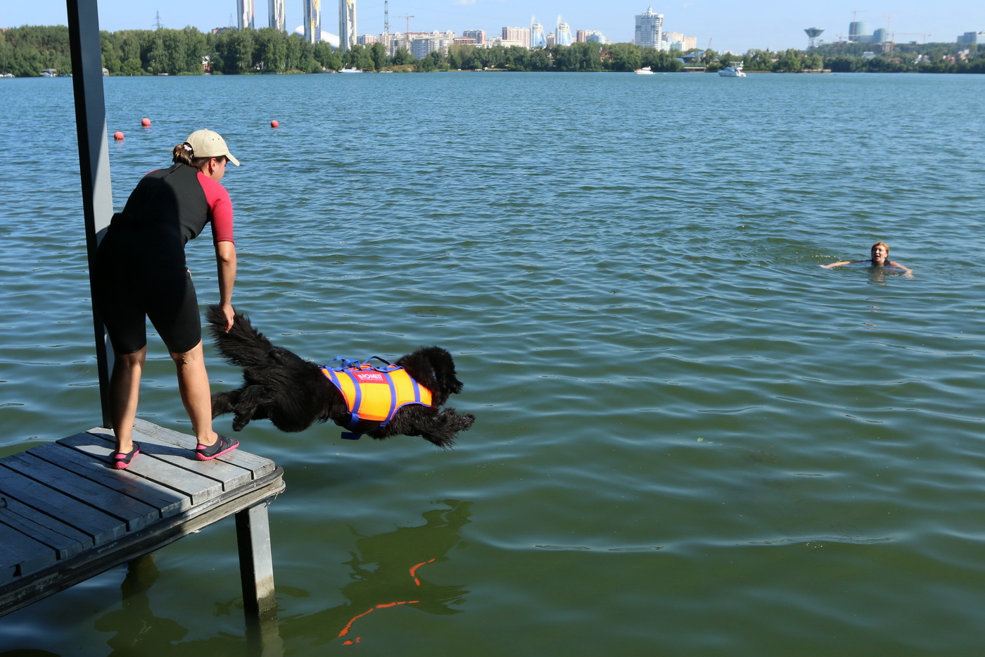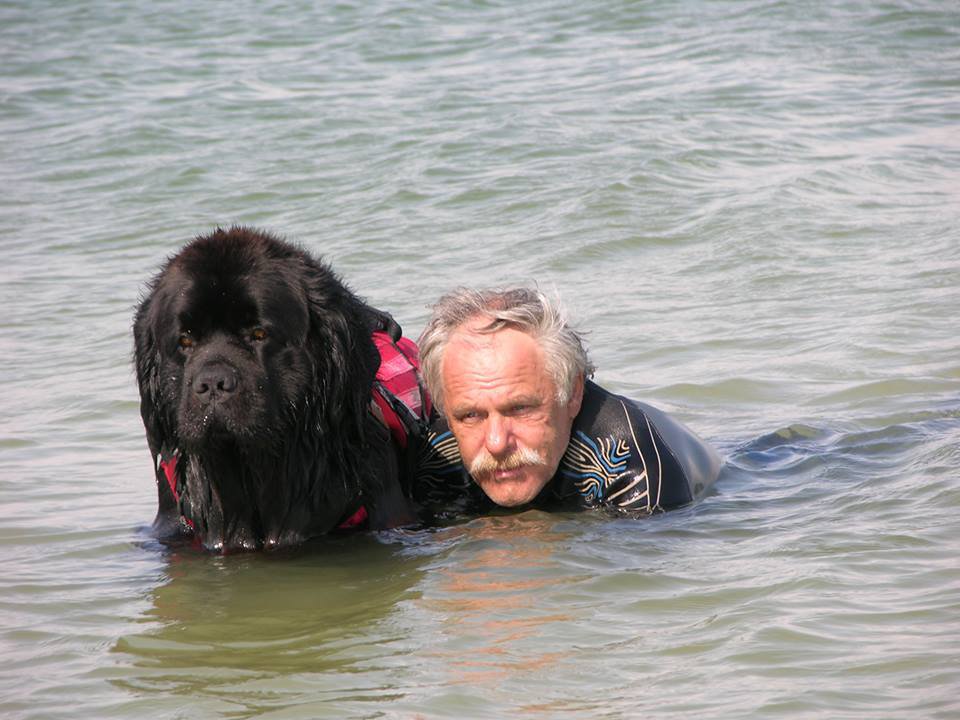 Ньюфаундленд без раздумий бросается в воду, заметив тонущего человека
