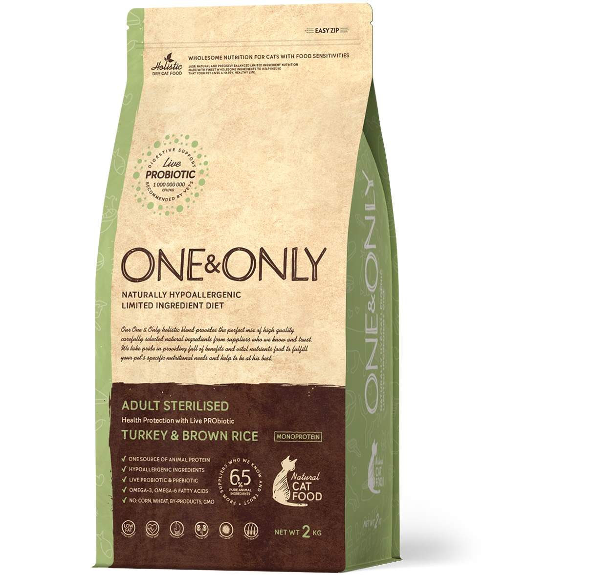 One Only — корм для кошек, выпущенный известной фирмой Grandorf. В качестве продукции от этой фирмы сомневаться не стоит. Все формулы, которые используются во время производства кошачьего корма, разрабатываются при тесном сотрудничестве с опытными ветеринарами. Поэтому продукция от этой бельгийской компании славится своим высоким качеством.