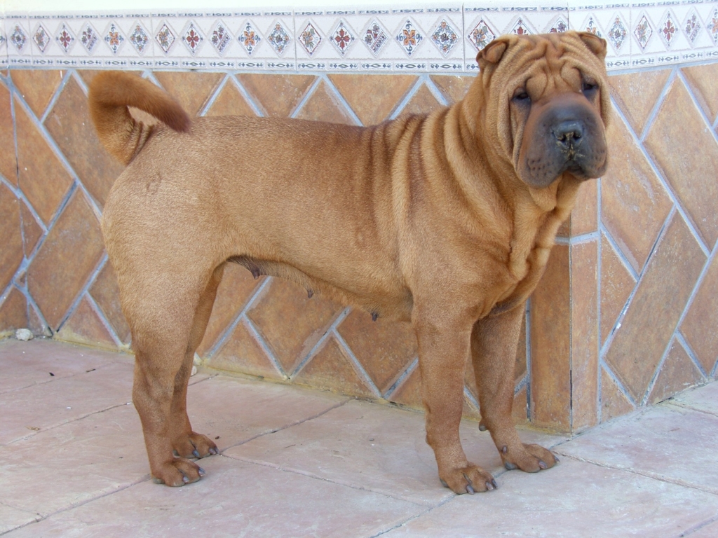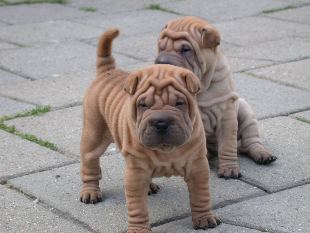 Китайский шарпей относится к бойцовской породе собак. Особенность этой породы является морщинистая шкура. У щенка большое количество складок покрывают все тело. У взрослого пса такие складки есть, в основном, на морде и шее. Первые неровности наблюдаются на третий день после рождения. К месячному возрасту их появляется семь штук.