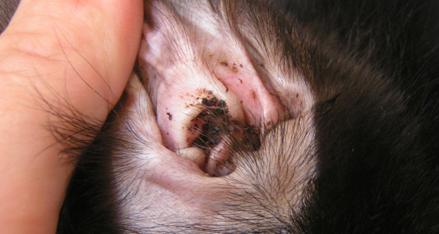 Очень часто его связывают с грязными ушами у кошек, особенно декоративных пород. Во многих случаях укусы самих паразитов не так страшны, как аллергическая реакция на их слюну. Вот она-то и может спровоцировать воспалительный процесс в ушной раковине, который будет сопровождаться сильным зудом, зловонным запахом и грязными выделениями.