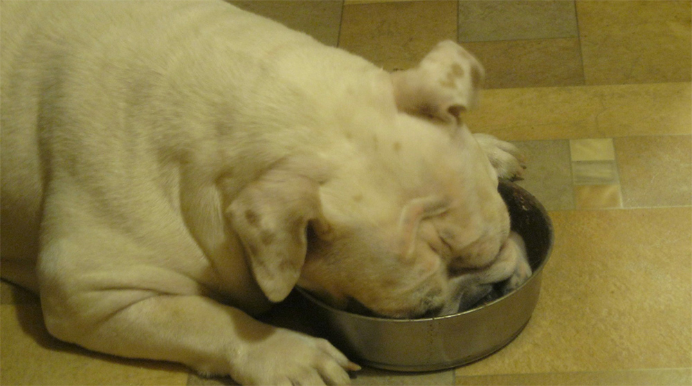 Кормить бульдога необходимо натуральным или сухим кормом, смешивание кормов не допустимо.