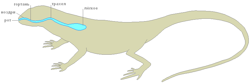 Дыхание только легочное. Механизм дыхания всасывательного типа (дыхание происходит с помощью изменения объёма грудной клетки), более совершенный, чем у земноводных. Развиты проводящие дыхательные пути (гортань, трахея, бронхи). Внутренние стенки и перегородки лёгких имеют ячеистое строение.
