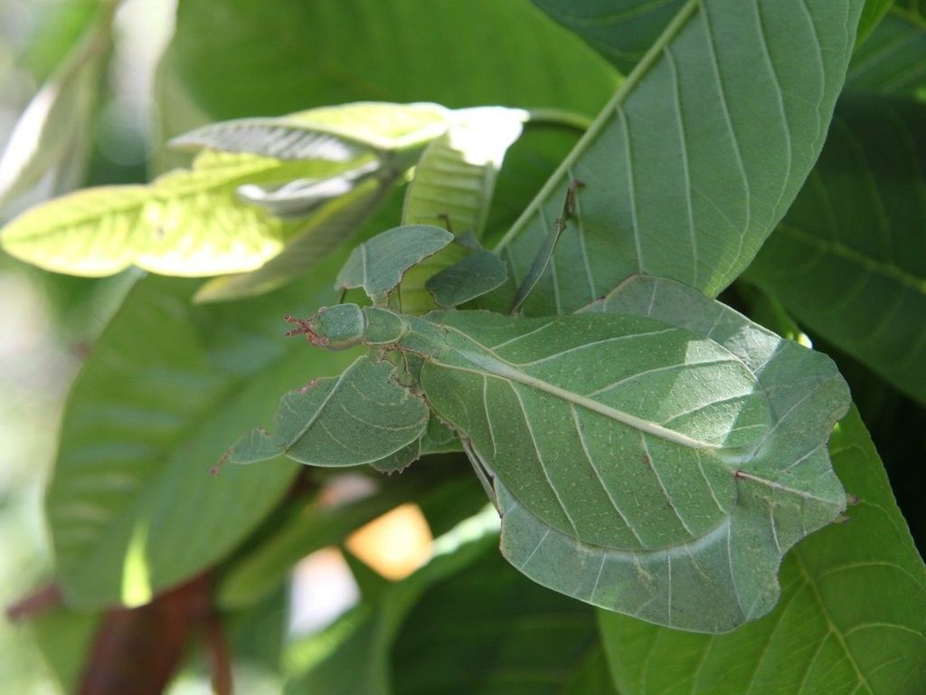 У них есть голова, незаметная и не бросающаяся в глаза, продолговатое туловище и длинные конечности. И в реале, и на фото такого палочника трудно отличить от ветки. Насекомые же, живущие среди листвы обладает таким же широким и зеленого цвета телом.
