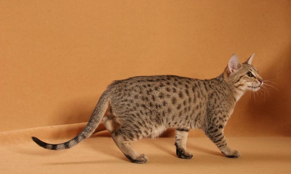 Эти кошки похожи на леопардов: на их теле равномерно распределены контрастного цвета круглые пятна размером от нескольких сантиметров до 1-2 миллиметров. На хвосте также «нарисованы» кольца, а вдоль позвоночника идет прерывистая полоса. Сплошная линия на спине считается дефектом экстерьера.