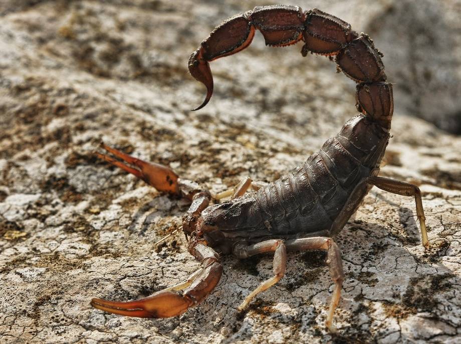 На человека скорпион первым не нападает, его надо побеспокоить; нарушить гнездо под камнями или задеть гостя, который залез на ночевку в башмак.