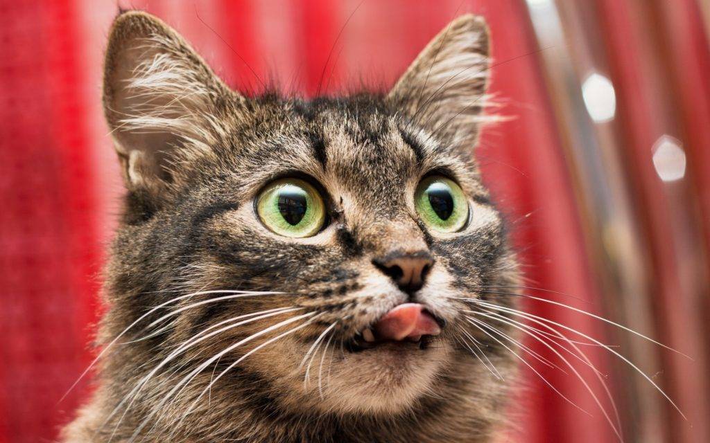 - Резкое переключение внимания во время умывания. Для чистки шубки коты используют язык. Внезапно отвлекшись на что-то интересное, они не всегда успевают спрятать его. В это время у них приоткрыт рот, из которого высунут кончик язычка.