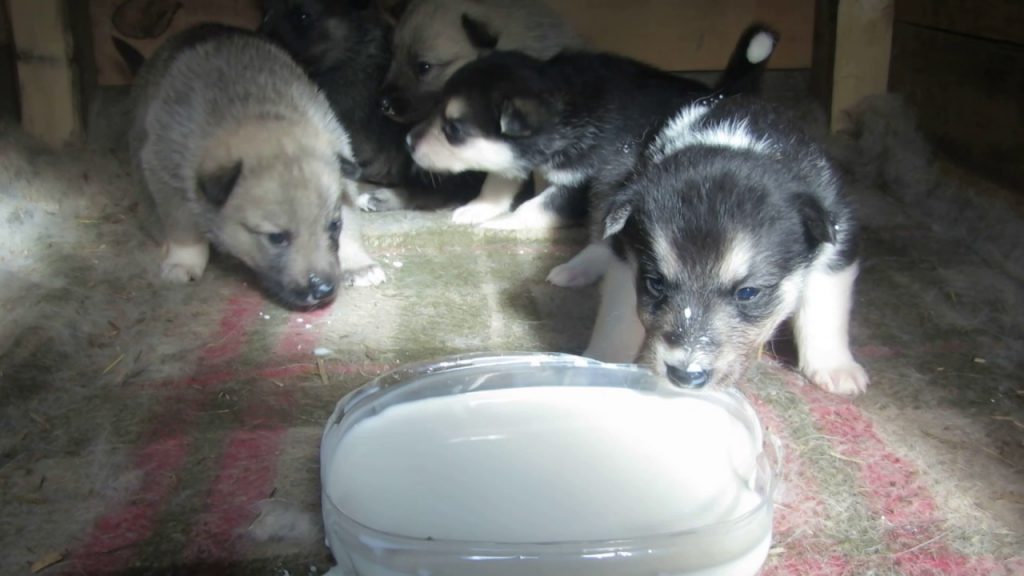 Кормление лайки после отучения от естественного материнского вскармливания должно включать кипяченное коровье молоко. У собак оно более жирное, поэтому чтобы довести молоко до нужной консистенции, добавьте немного сахара и сливок.