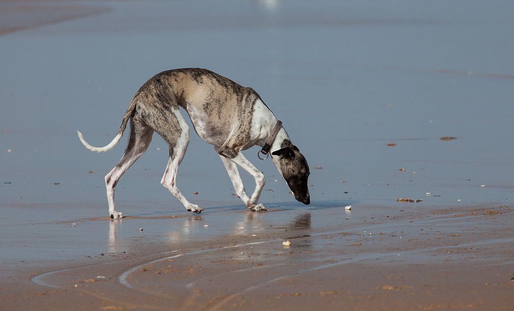 - Гулять с грейхаундом нужно до кормления, 2 раза в день по 1-2 часа. Дополнительные выгулы для походов в туалет – еще 2 раза по 20 минут.