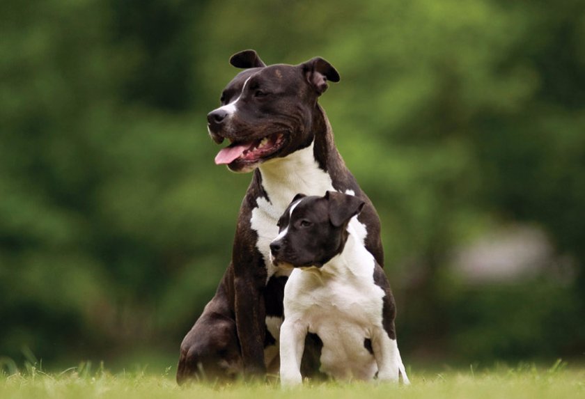 Стаффорд отлично уживается в большой семье с детьми. Если вы беспокоитесь, что собака навредит ребенку – оставьте опасения, лучше подумайте как обеспечить малышу время, в которое «четвероногий нянь» не сможет заботиться о подопечном. Не бойтесь заводить кошек или вторую собаку (другого пола), если вы не обучите Амстаффа агрессии, он не станет задирой. Порода не склонна к доминированию и вы всегда сможете «договориться» с подопечным, используя элементарные знания собачьей психологии.