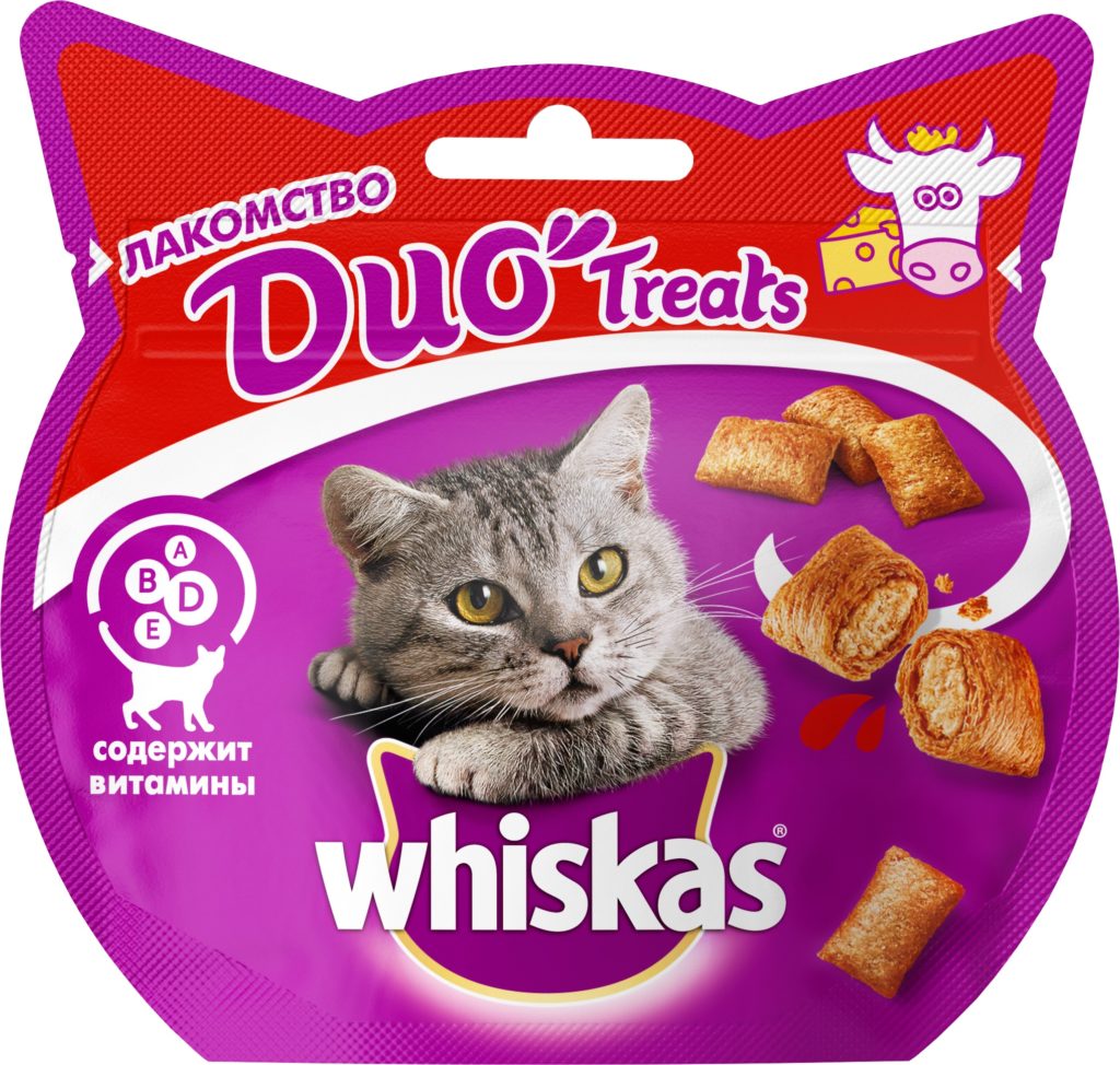 Помимо нескольких линеек основного питания, под брендом «Whiskas» производится лакомство «Duo Treats». Этот продукт можно использовать в воспитательных целях в качестве поощрения или просто для того, чтобы побаловать своего любимца.