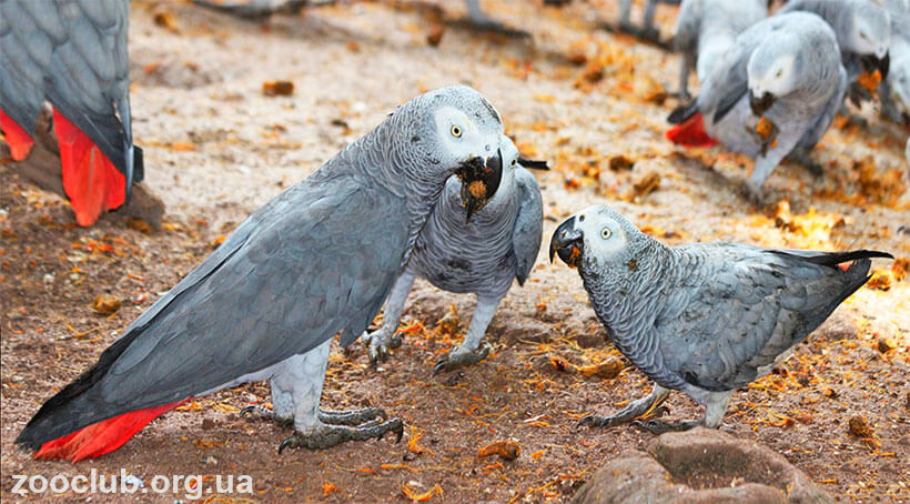 – зерновые. Овес, ячмень, пшеница, кукуруза, просо и др. виды зерна предпочтительно размачивать или давать пророщенными. Жако не любят слишком твердую пищу. Также должны быть в достатке сочные корма – овощи, фрукты, ягоды, зелень. В небольших количествах можно угощать семечками, орехами (кроме миндаля), размоченным в молоке хлебом, вареным яйцом. Можно делать салатики из фруктов, а также смесь из каши, яйца и тертой моркови. Кроме воды птицам иногда дают разбавленные соки и минеральную воду. Что касается мясных продуктов, то здесь имеются противоположные мнения. Во всяком случае, если вы не будете вводить мясо в рацион, хуже от этого не станет. При этом питание должно быть разнообразным и полноценным.