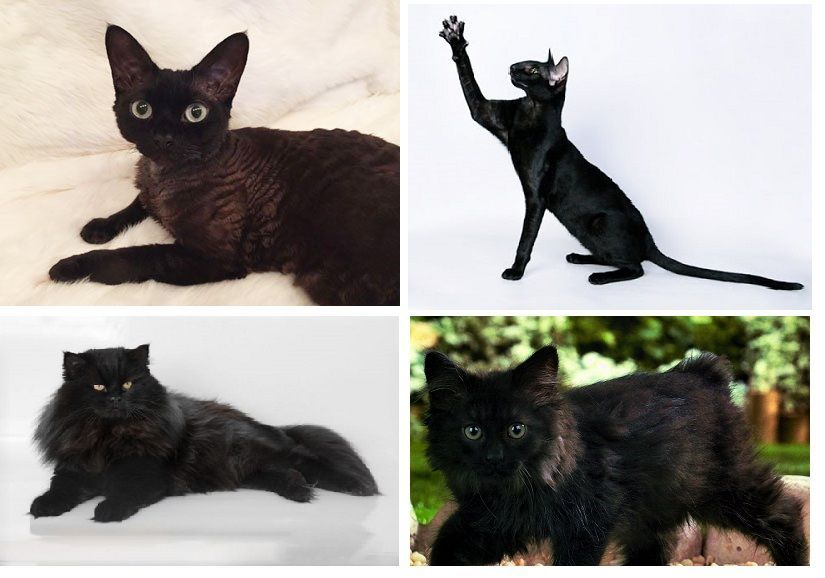 У многих разновидностей окрасы разнообразны по цветовой палитре. Среди кошек, у которых черный цвет шерсти допустим: