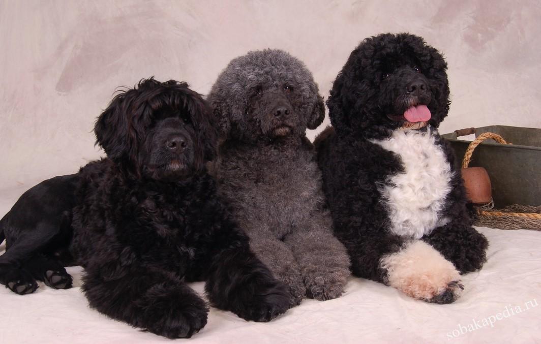 Самыми распространёнными являются чёрная водяная собака и чёрно-белая.