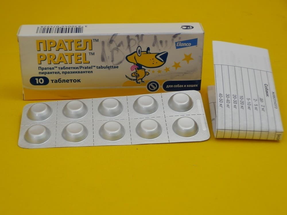 Прател применяют не только в лекарственных целях, но и в профилактических. Дозировка при профилактике заражения такая же, как и при терапии. Благодаря крестообразной насечке на поверхности таблетки ее легко разломать на несколько равных частей и скормить питомцу.
