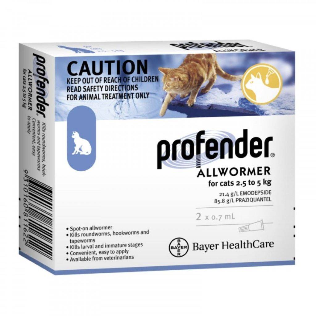 Действующие вещества профендера – празиквантел и эмодепсид. Эффективен в отношении круглых и леточных червей. Терапевтический эффект наступает на третьи-четвертые сутки после нанесения препарата на кожу. Средняя стоимость: 1000 рублей.