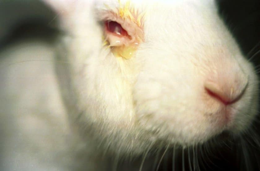 Заболевание замечают по изменившемуся поведению. Воспаленные глаза болезненно реагируют на свет, кролик забивается в темный угол, ничего не ест. При внимательном рассмотрении обнаруживают покраснение слизистых, серозные, слизистые или гнойные выделения, засохшие корочки.