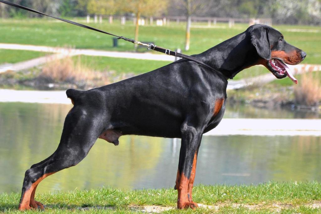 Правильно воспитанный пес уравновешен, но желательно не испытывать его терпения. Челюсти добермана смыкаются мертвой хваткой. Вероятно, поэтому в специальных печатных изданиях для собаководов, в рубриках «Самые опасные собаки мира» фото добермана встречается чаще других.