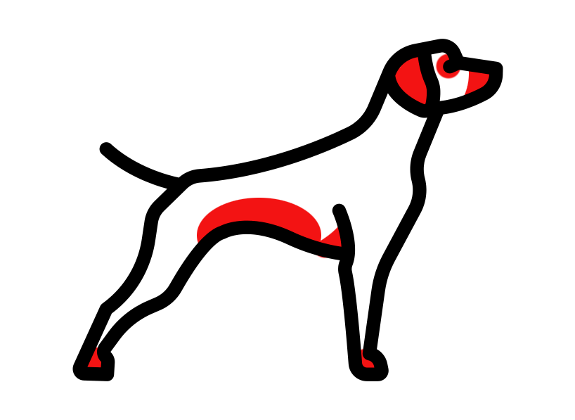 Красным цветом помечены места на теле собаки, поражаемые аллергической сыпью