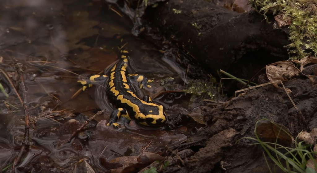 Яркий окрас огненной саламандры предупреждает о том, что она ядовита