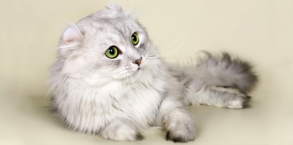 У породы вислоухих шотландцев (скоттиш-фолд) – круглая голова и большие глаза. Ушки наклонены вперед под углом 90⁰. Все вместе это делает мордочку похожей на «лицо забавной куклы» или на «обаятельного совенка».