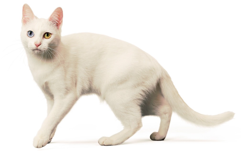 Белоснежные кошки всегда вызывают восхищение, а у этой породы есть еще одна интересная особенность – их глаза разного цвета (чаще всего один желтый или зеленый, другой – голубой).