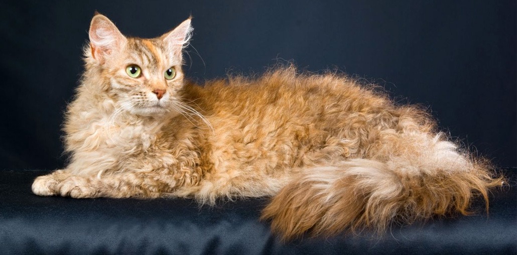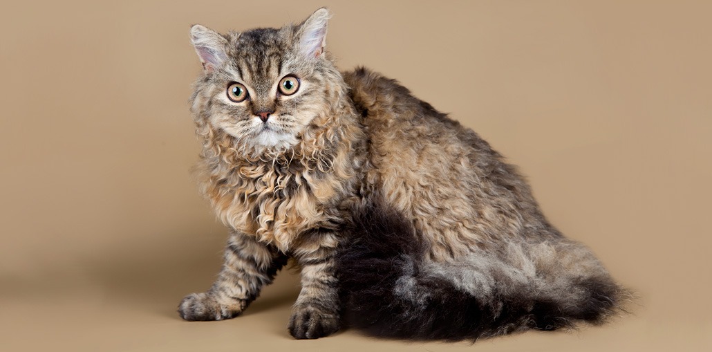 Кудрявых пород существует много, но у селкирков пучки завитой шерсти располагаются хаотично – в разных направлениях. Создается впечатление, что сильный ветер разметал их в разные стороны, а заодно «закрутил спиралью» и усы кота.