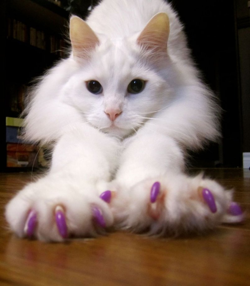 А как оригинально смотрится перс или кот экзот с ярким разноцветным «маникюром»!
