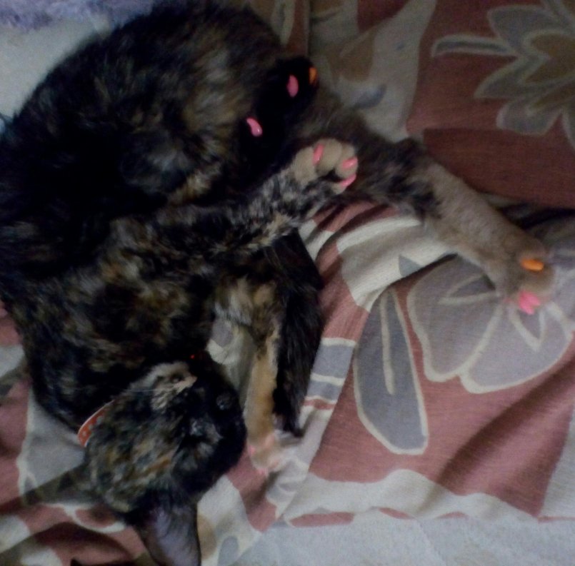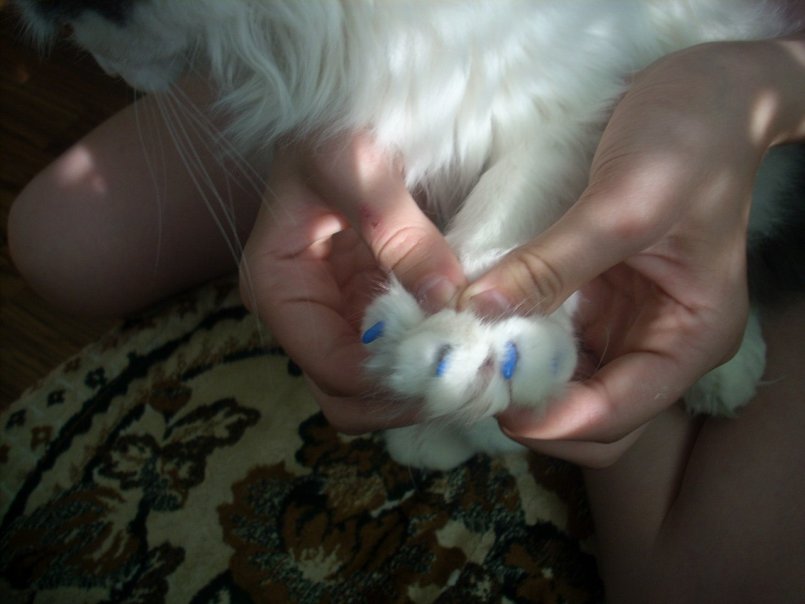 Сначала любая кошка постарается сгрызть и любым образом снять непривычное покрытие. Тогда заботливого хозяина сразу начинает грызть червячок сомнения — а не страдает ли питомец от такого маникюра?