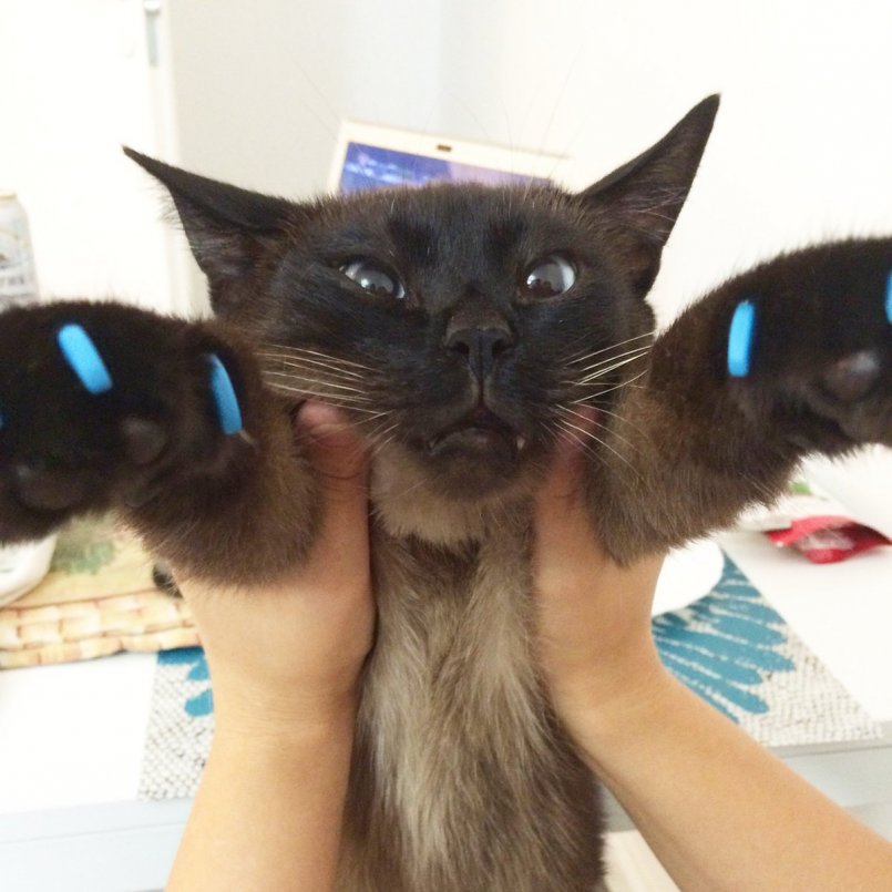 Кроме того, некоторые «продвинутые» кошатники стараются приобретать для своих любимцев всевозможные девайсы. Вместо серых (желтоватых, иногда некрасивых) когтей на лапках кошки будут красивые «мягкие коготки». Но кроме пользы, антицарапки могут нанести и вред. Накладка может врасти в подушечку лапы. Но когти и без колпачка могут врастать, поэтому это лишь косвенный вред. Нужно чаще осматривать лапкой своего питомца. Обычно врастания происходят в тех случаях, когда их неправильно наклеивают. По правилам, колпачок должен прилегать к когтю не до основания, а с отступом в несколько миллиметров. А также нельзя наклеивать колпачки на неостриженные когти.