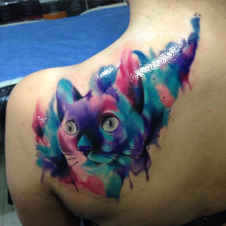А вот у норвежцев этих мурлыкающих животных «запрягали» в повозку богини Фреи, которая является покровительницей верной любви. Интересная трансформация символизма кошки произошла в одном из индийских штатов – Сашт. Первоначально животное ассоциировалось с семейным благополучием, материнством. Но в настоящее время почему-то стали считать его скверным, переносящим отрицательную карму. У тату кошка значение зависит от особенностей страны. Например, долгое время черный кот в европейских странах, так или иначе, ассоциировался с ведьмами и темными силами. Таких котов даже истребляли. Однако позже ассоциации изменилась, а черный кот стал восприниматься, как символ: