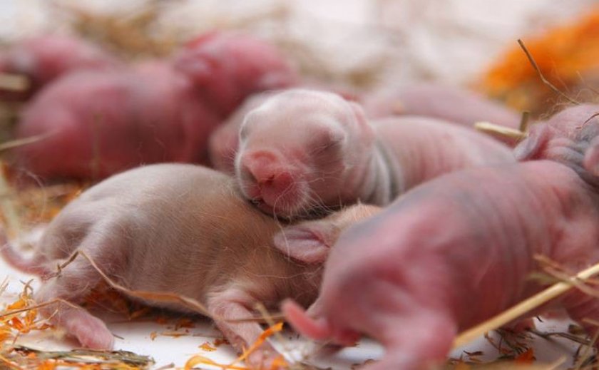 Точно определить день родов сложно, но можно обратить внимание, что перед окролом самка перестает двигаться совсем. Заметив такое поведение, нужно накрыть клетку плотной тканью темного цвета и исключить посторонние громкие звуки