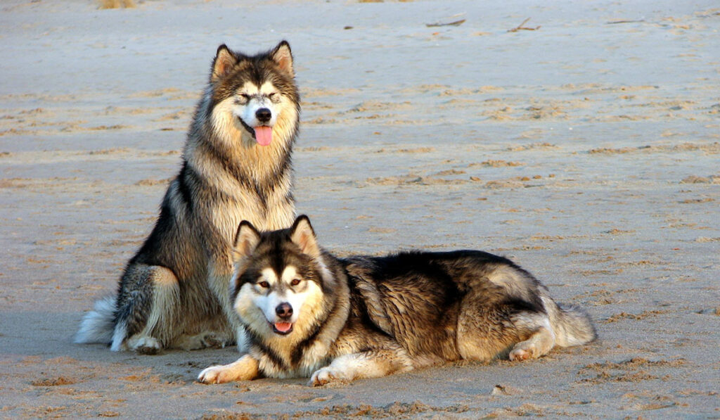 Это также очень древняя порода, которую регулярно путают с хаски. Но у маламута совершенно другое сложение и окрас. Это очень выносливая ездовая собака, место которой — на Крайнем Севере. Рост в холке — 63-58 см.