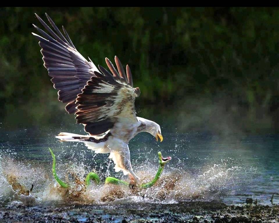 Схватив добычу, охотник старается проглотить ее живьем. Он умеет довольно широко раздвигать пасть, подобно другим змеям. При охоте за рыбой это отлично помогает. Та быстро проскальзывает в глотку хищника. А вот с лягушкой сложнее. Иногда наиболее проворной и крупной лягушке удается вырваться из пасти, оставив там одну из лап.