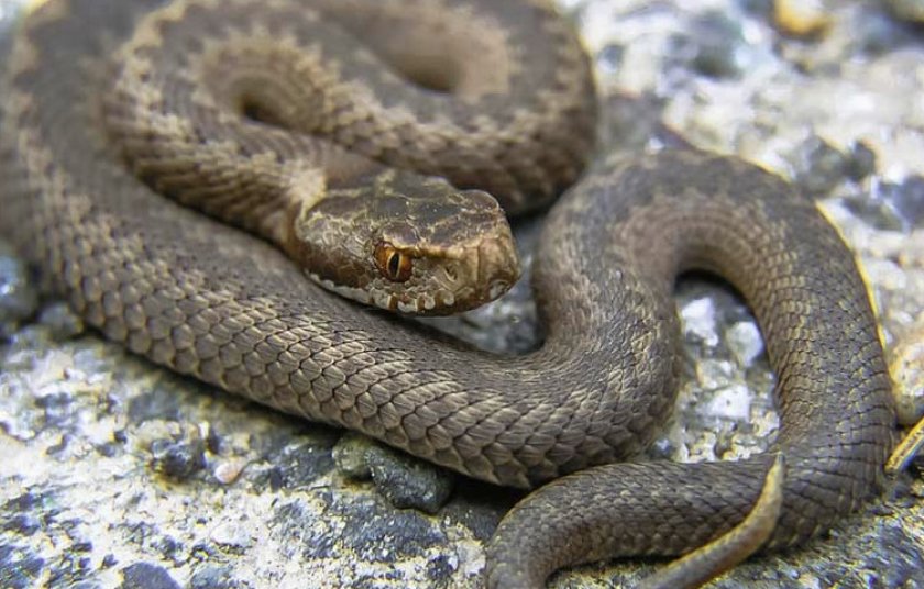 Очередное отличие ужа от гадюки заключается в том, что зрачок гадюки вертикальный, у ужей он круглый.