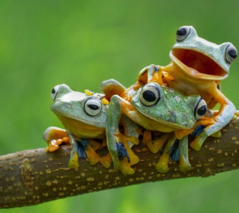 В случае опасности один из видов лягушки может пролететь немного по воздуху — на лапах есть перепонки, которые имеют достаточную площадь при раскрытых лапках для успешного планирования с дерева.