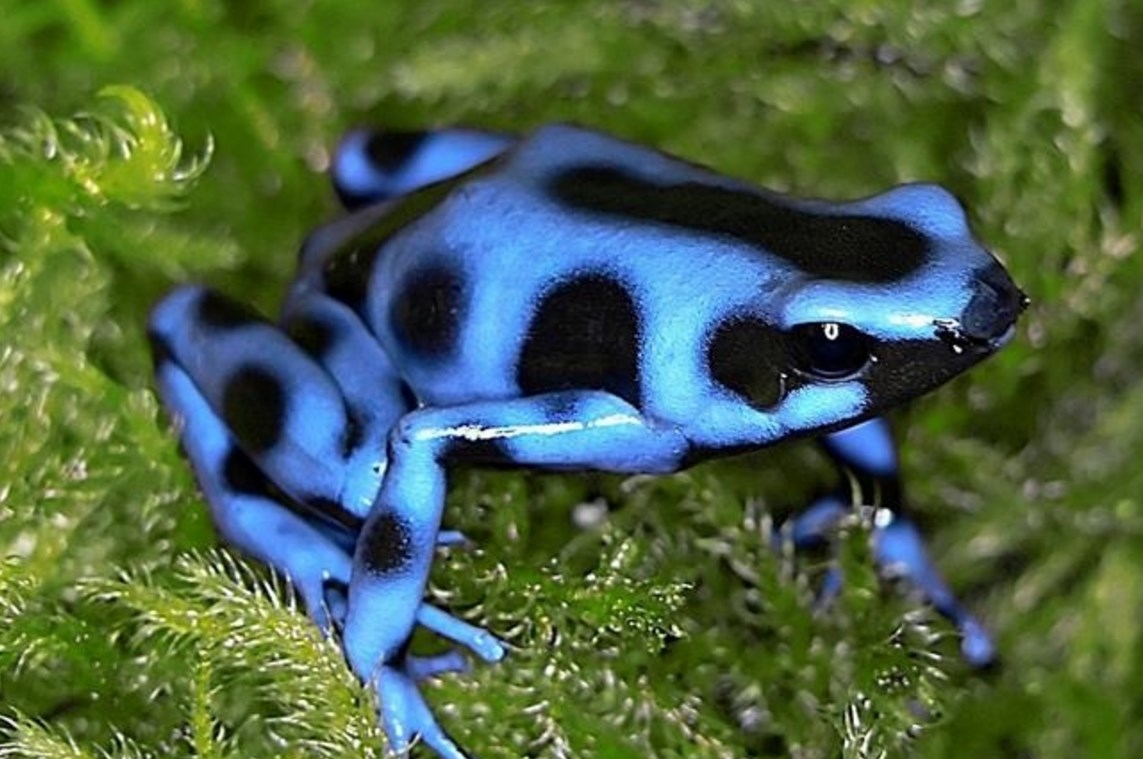 В Южном Суринаме живет голубой древолаз, который светится на ярком освещении, словно из фосфора. Кожа красивого темно-сапфирового цвета выделяет яд, который представляет опасность для естественных хищников и для человека.