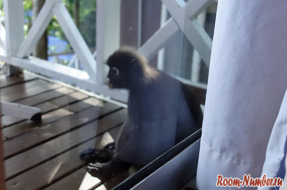 На острове белок множество. Ползают по деревьям, по крышам, по дорожкам, приходят в рестораны. По утрам любят приходить на веранду и клянчить что-нибудь пожевать. Мы покормили всеядных белочек чипсами.
