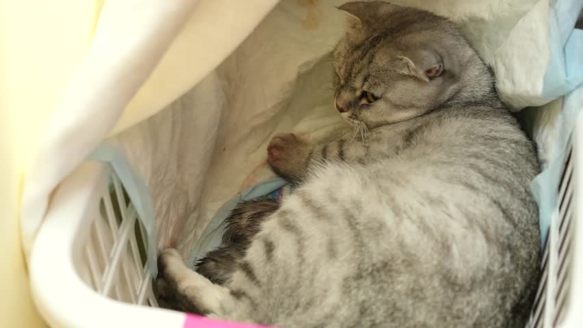 Во время родов в организме кошки запускаются инстинкты, заложенные Природой, поэтому, даже кошка, которая первый раз рожает, знает, как и что делать. Однако, случаются ситуации, когда животное впадает в панику, начинает метаться по комнате – это последствия болевого шока. В этом случае кошку необходимо уложить в коробку и ласково с ней поговорить, погладить её по голове и успокоить животное. Ведь, её состояние паники и страха блокирует естественные процессы, которые сейчас протекают в её организме.