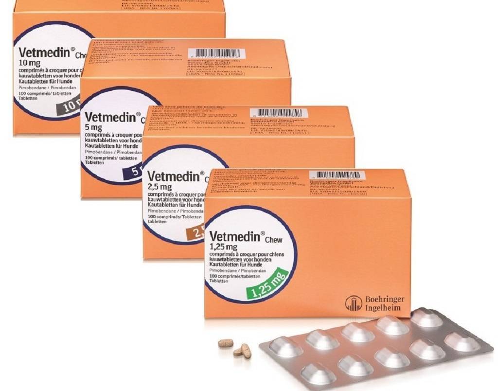 При сердечной недостаточности, дилатационной кардиопатии и других схожих видах поражения важного органа, активный компонент ветеринарного средства поддерживает ослабленное сердце, ускоряет ток крови, что стабилизирует уровень поступления питательных веществ и кислорода к клеткам. При подборе оптимальной дозы кардиотропного средства, своевременной коррекции уровня пимобендана препарат можно принимать пожизненно собакам, имеющим показания к назначению Ветмедина