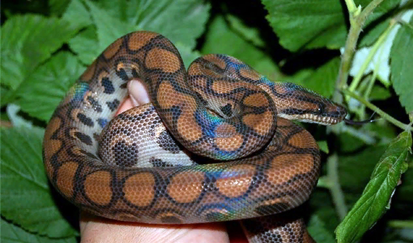 Окрас у удава необычайно красивый и бывает разным – всех цветов радуги с разнообразными узорами. Эти рептилии неприхотливы и незлобны, поэтому их нередко заводят в качестве домашних питомцев.