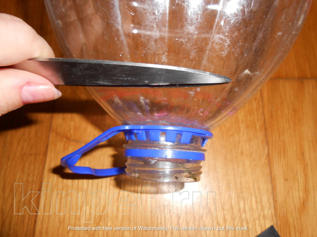 - Бутылку нужно разрезать так, чтобы получился конус.