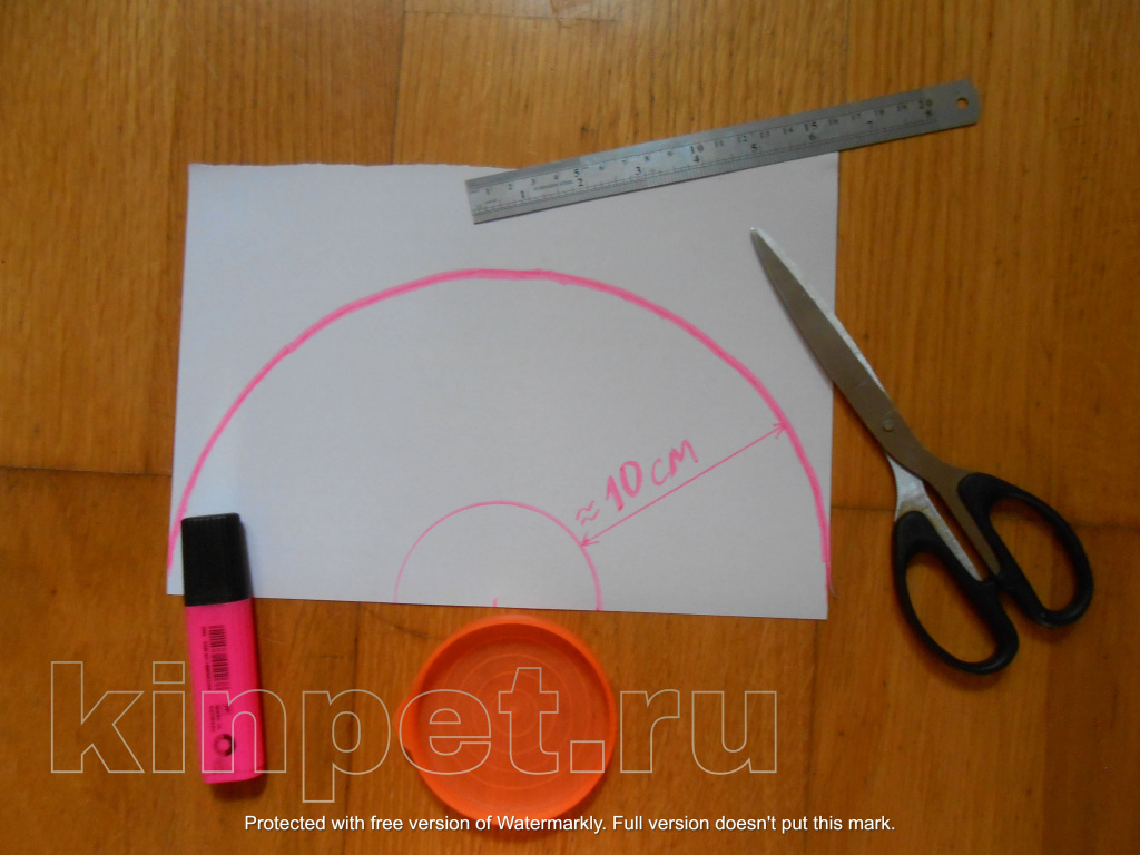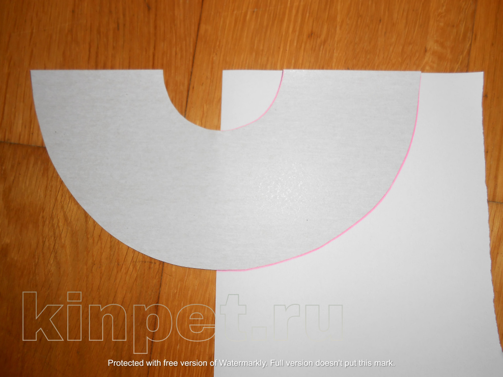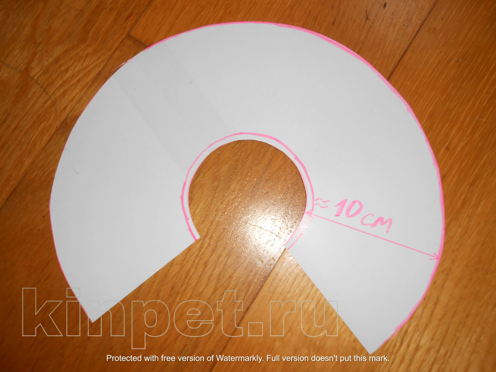 - Нарисуйте на картоне конус с длиной внутреннего круга равной обхвату шеи (+2,5 см). Ширина изделия будет равняться второй мерке (+2,5 см.).