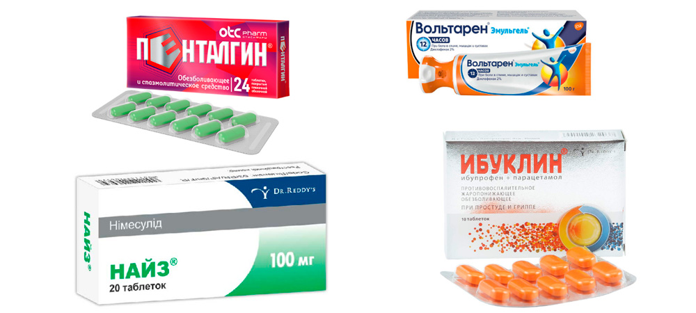 - принять любое успокоительное + лекарство из группы нестероидных противовоспалительных средств (НПВС) – Диклофенак (таблетку внутрь или ректальную свечу), Ибуклин, Найз и др. На кожу над больным суставом нанести мазь или гель из этой же группы (Вольтарен, Пенталгин и др.);