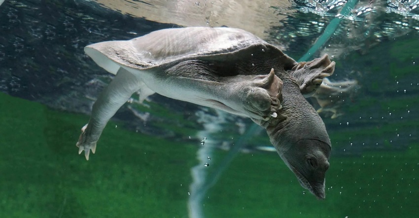 Необычное животное относится к виду мягкотелых, кожистых черепах. Особенность его панциря в том, что присутствуют лишь несколько окостенелых мест, другие же покрыты хрящевой каймой.