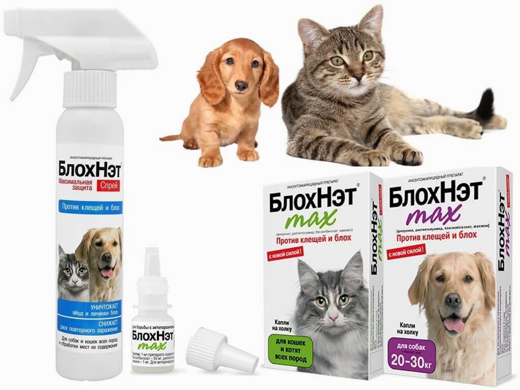 В форме спрея рекомендован к использованию не только для взрослых кошек и собак, а также для маленьких щенков и котят. Компоненты блохнэт max убивают насекомых-паразитов наповал.