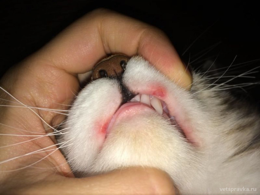 - Кошка часто умывается, сильно трет пасть словно ей что-то мешает.